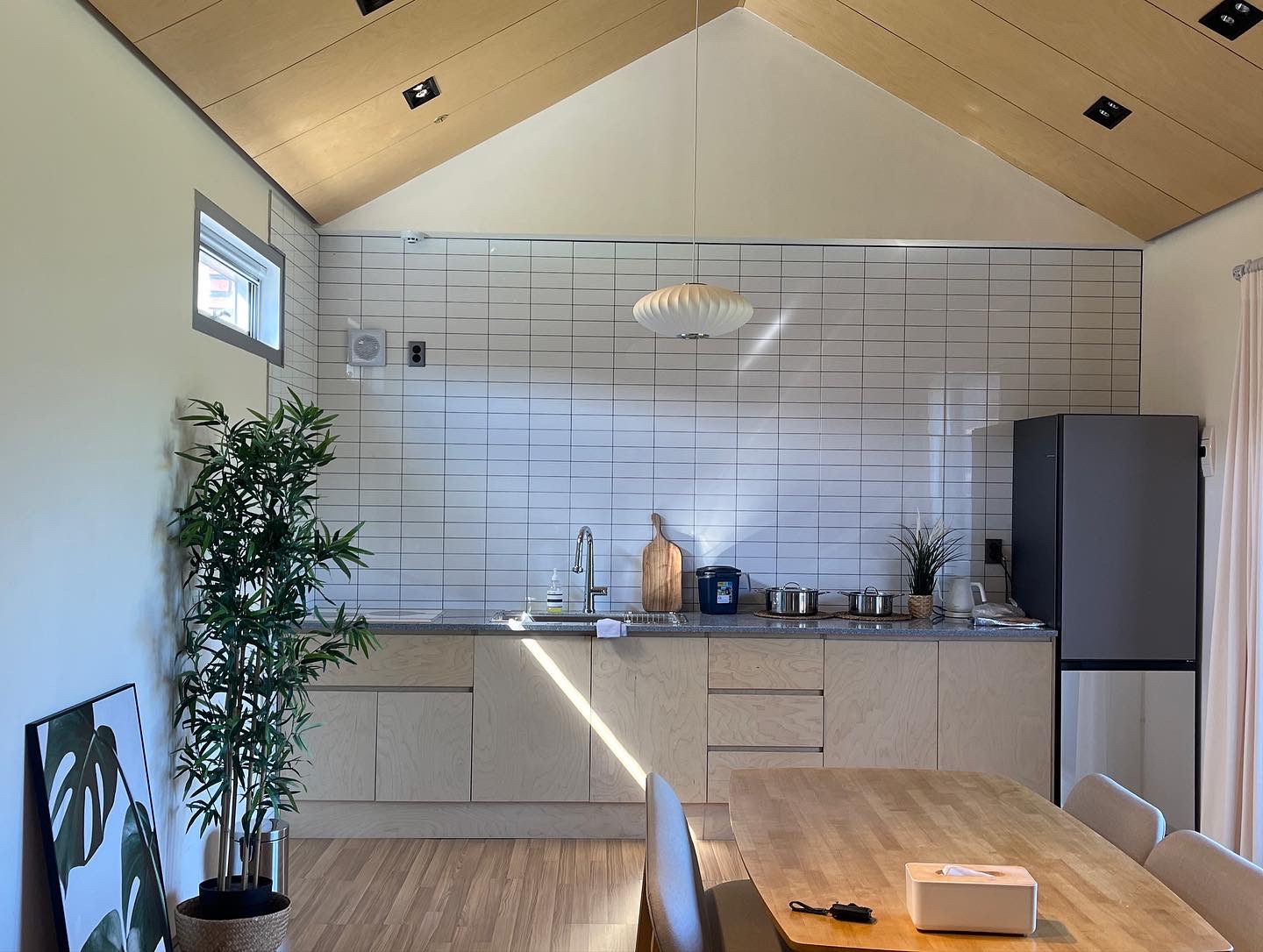 강원도 숙소 나무밭이 좋았던 두 번째 이유, 너무나도 깔끔하고 깨끗한 숙소 상태였다. 세시 입실이었지만 조금 일찍 도착했을때에도 쨍쨍한 햇볕에 이불을 말리며 소독까지 진행하고 계셨다. 청소중이어서 일찍 입실할 수 없었지만 청소가 끝난 후 들어간 숙소는 마치 새 집에 들어온 것 같은 착각이 들 정도로 깨끗하고 깔끔한 인테리어가 우리를 반겼다. 향긋한 향은 덤으로 정말 대접받는 느낌이 들었다. 그냥 막 찍어도 그림인 듯한 숙소의 상태, 정말 아침, 저녁, 밤, 새벽 어느 시간에 있어도 예쁜 숙소였다.